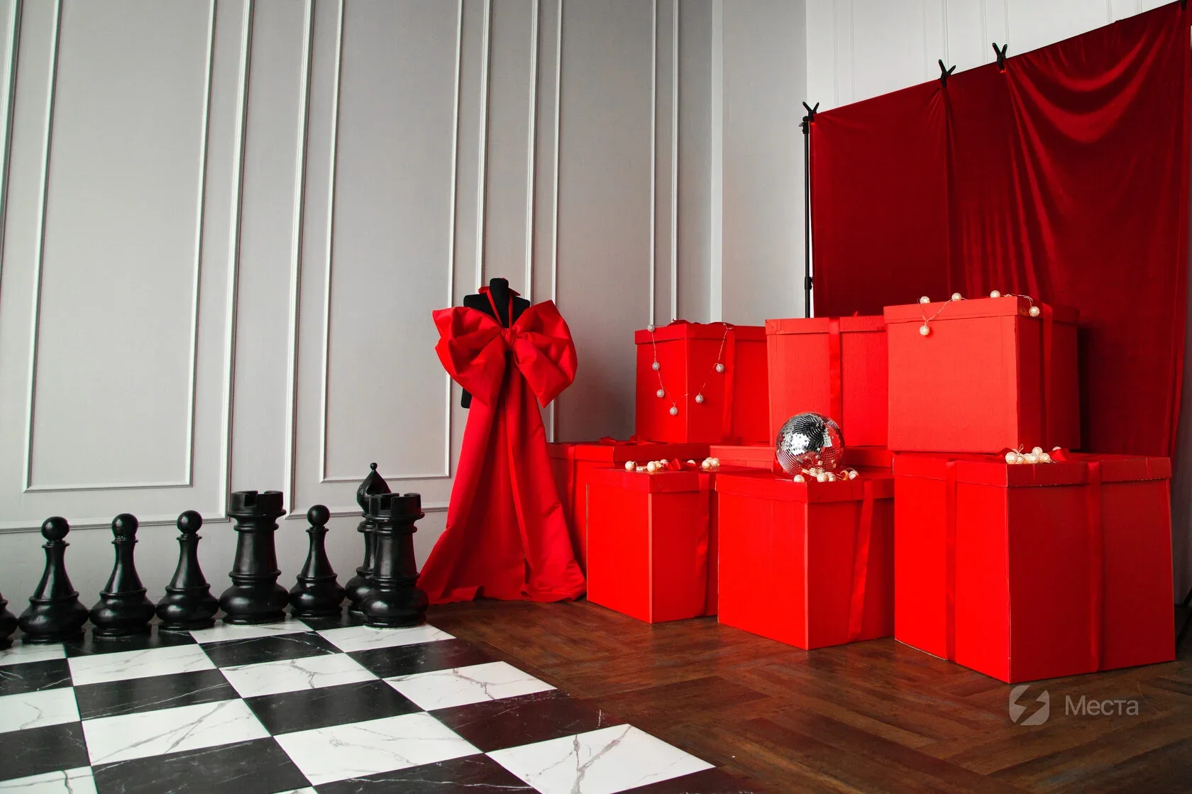 * Красные коробки - сезонная локация, которая доступна в зале (с октября-март). В летний период времени, данная локация не входит в стоимость аренды зала и устанавливается по предварительному запросу.