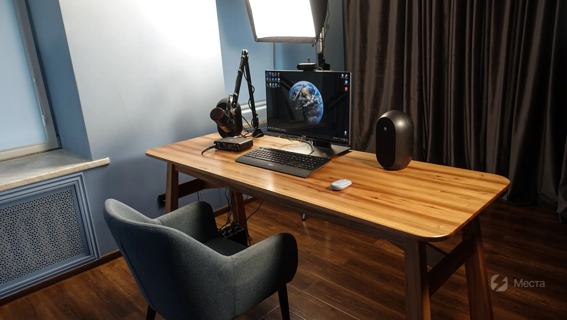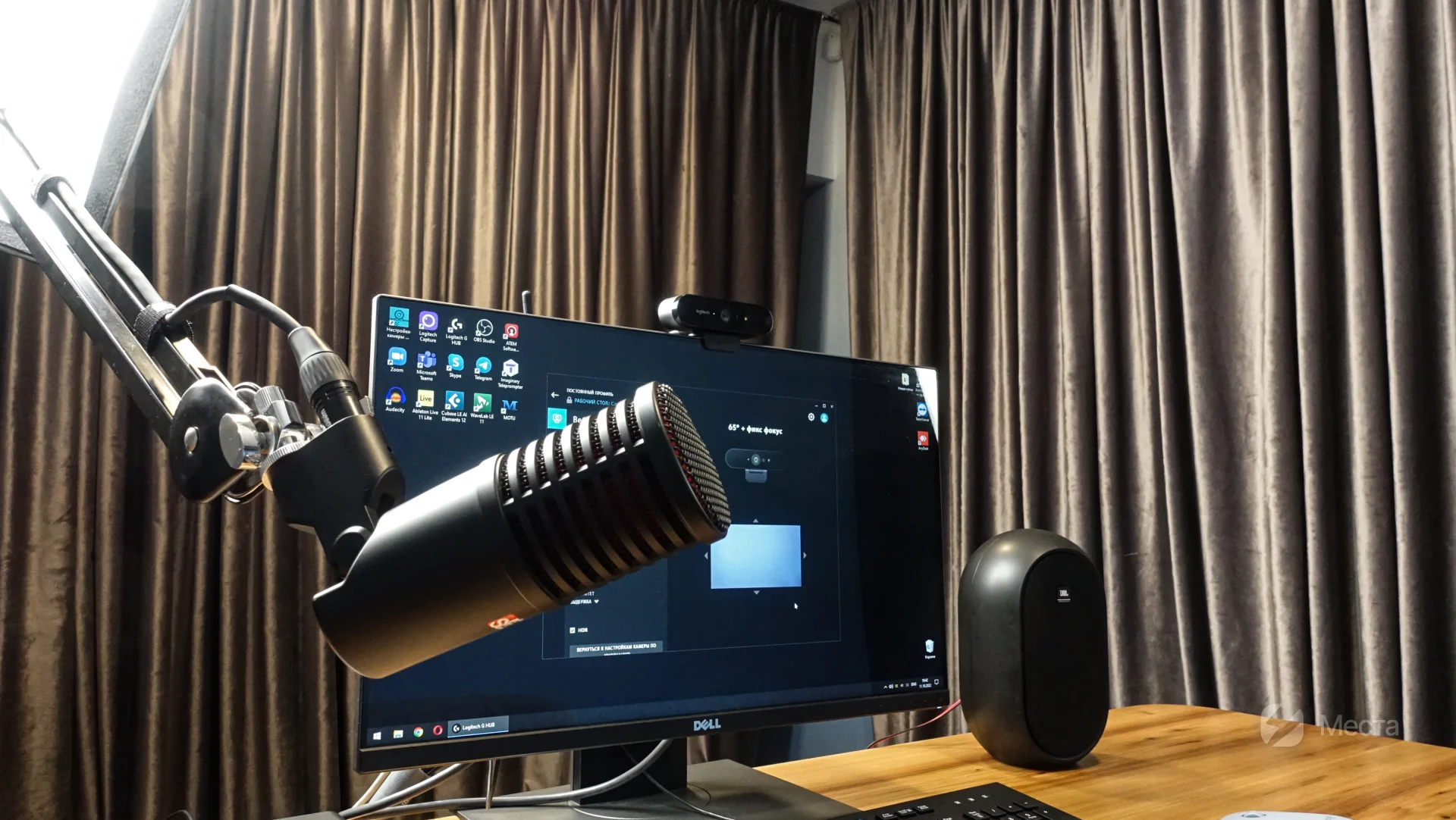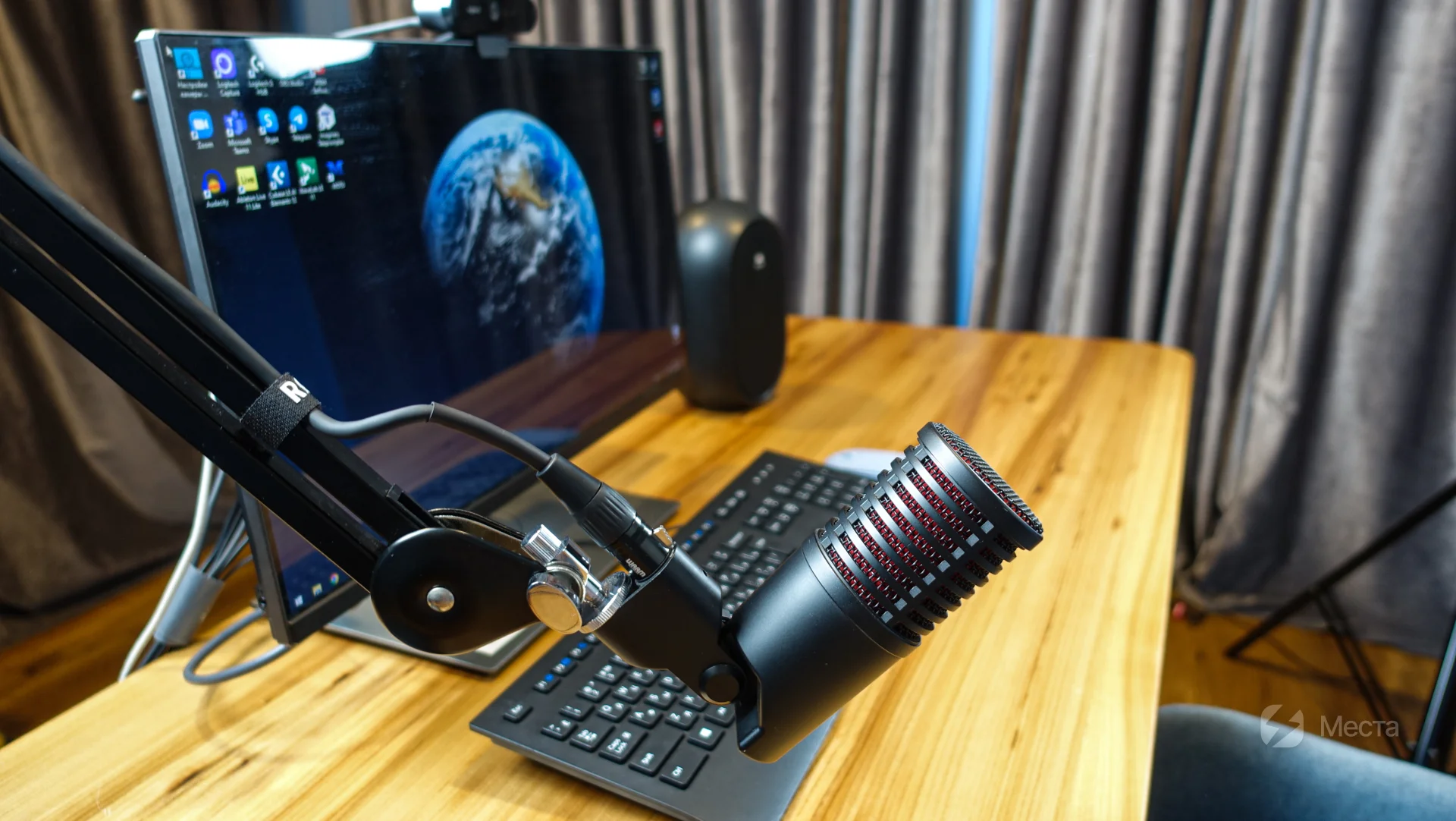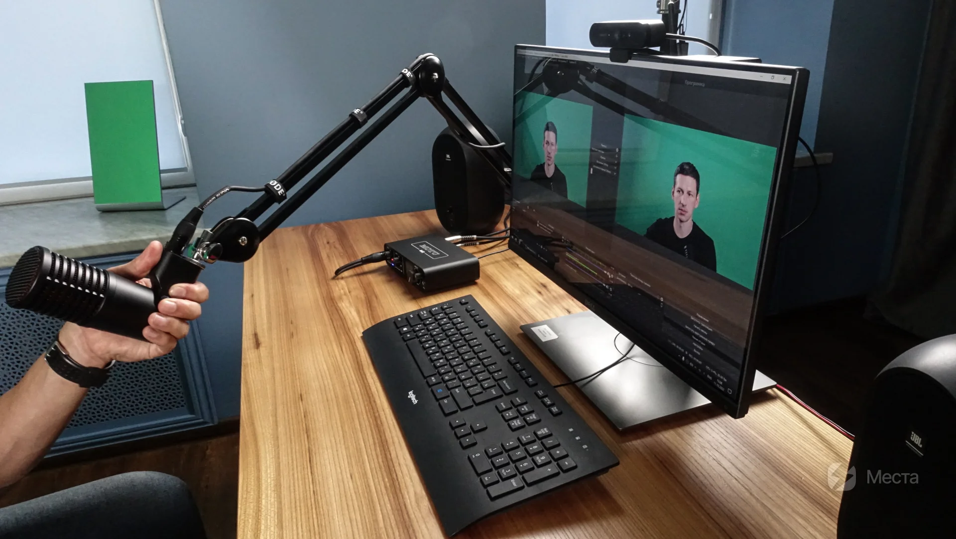 Микрофон студийного качества с кардиоидной направленностью и встроенным предусилителем. Можете взять его в дополнение к установленному в видеостудии для записи подкаста с двумя участниками.