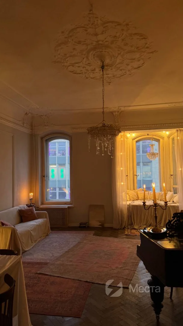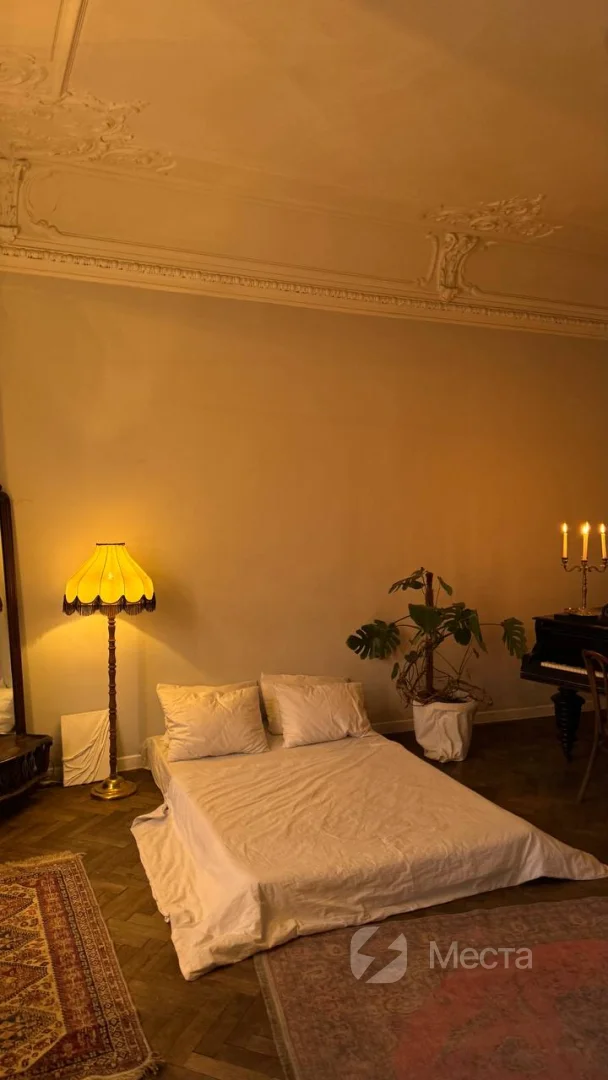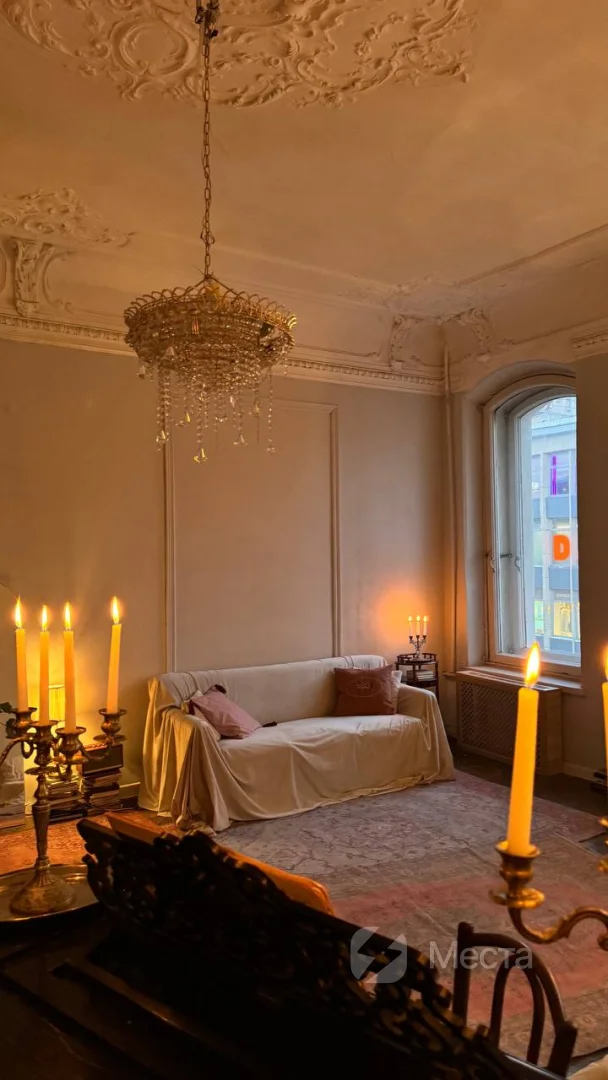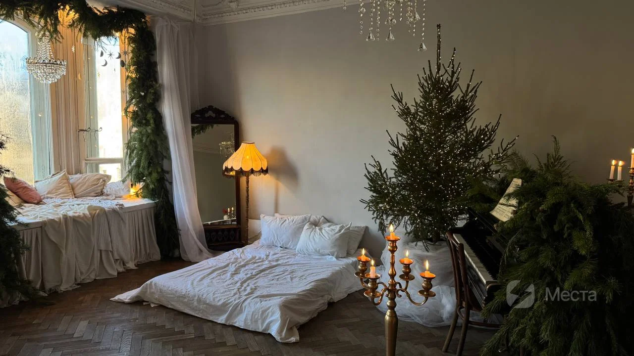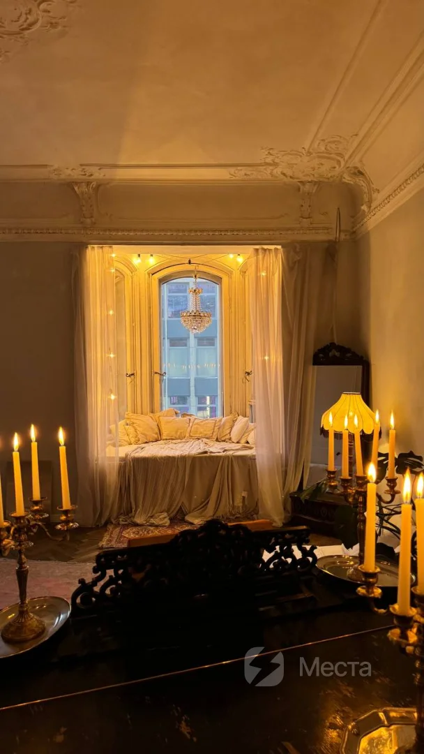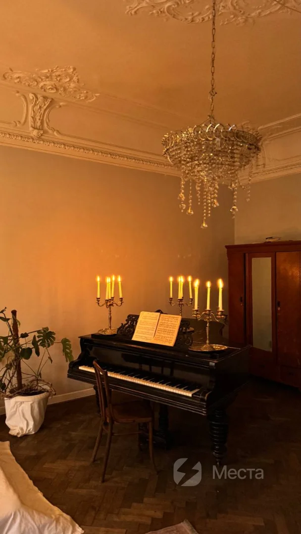 Это место, где можно провести не только фотосессию, но и устроить камерное торжество в кругу близких или киновечер, сделать мастер-класс или организовать лекцию. В комнате находится рояль, матрас, диван и стол. Также у нас есть проигрыватель, который поможет создать еще более творческую атмосферу во время съемки. Ну и, конечно, отдельного внимания заслуживает эркер и вид на сердце Петроградки — площадь Льва Толстого и театр им. А. Миронова. Есть возможность зажигать свечи, которые еще больше наполняют пространство уютом.