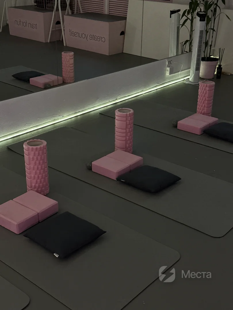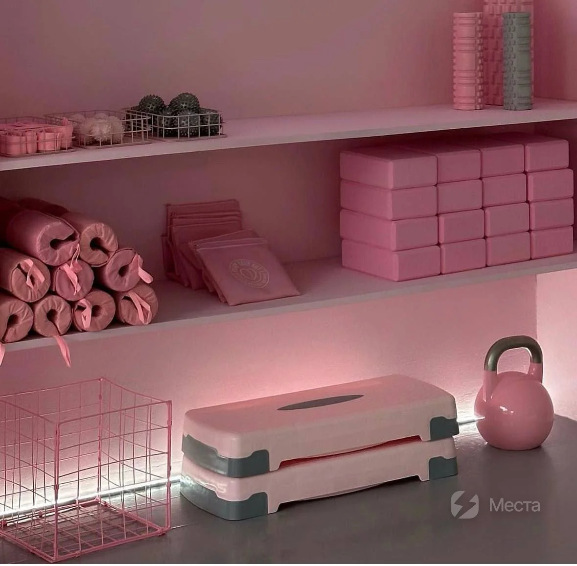 В твоём распоряжении всё: от профессионального инвентаря (гантели, коврики, МФР) до уютных деталей (пледы, свечи, подушки) для создания любой атмосферы — от динамичной функциональной до глубокой инь-йоги 🌸