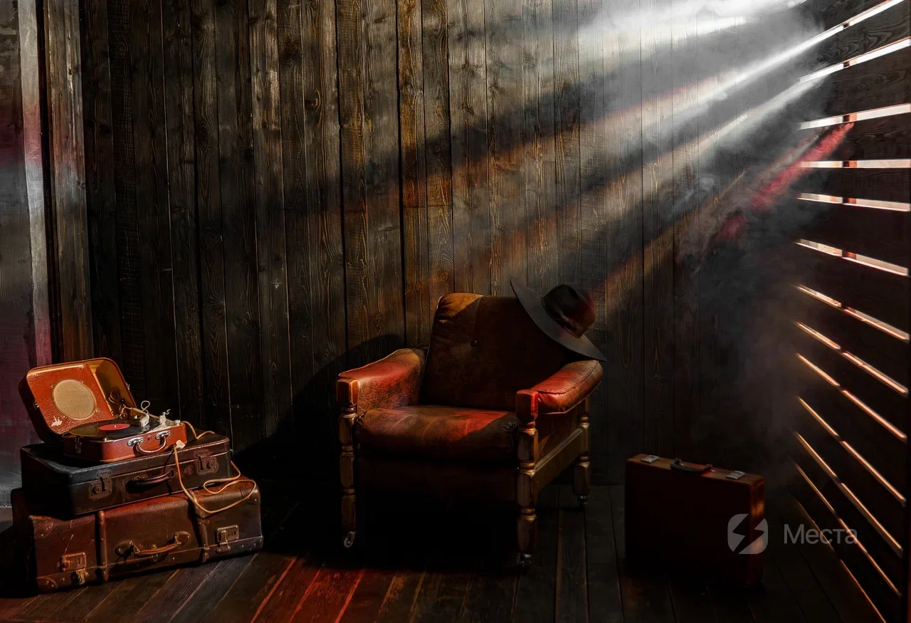 стена из ретро-телевизоров, книжная стена, металлический угол с подвесной системой цепей, стена из черного кирпича, а также фактурная и деревянная стены, старинное фортепьяно и ветви деревьев. Установлена система из трех фонов. Пространство не имеет окон, что создает интимную обстановку при съемки и возможность точного использования света. Идеально подходит для смелых и стильных кадров