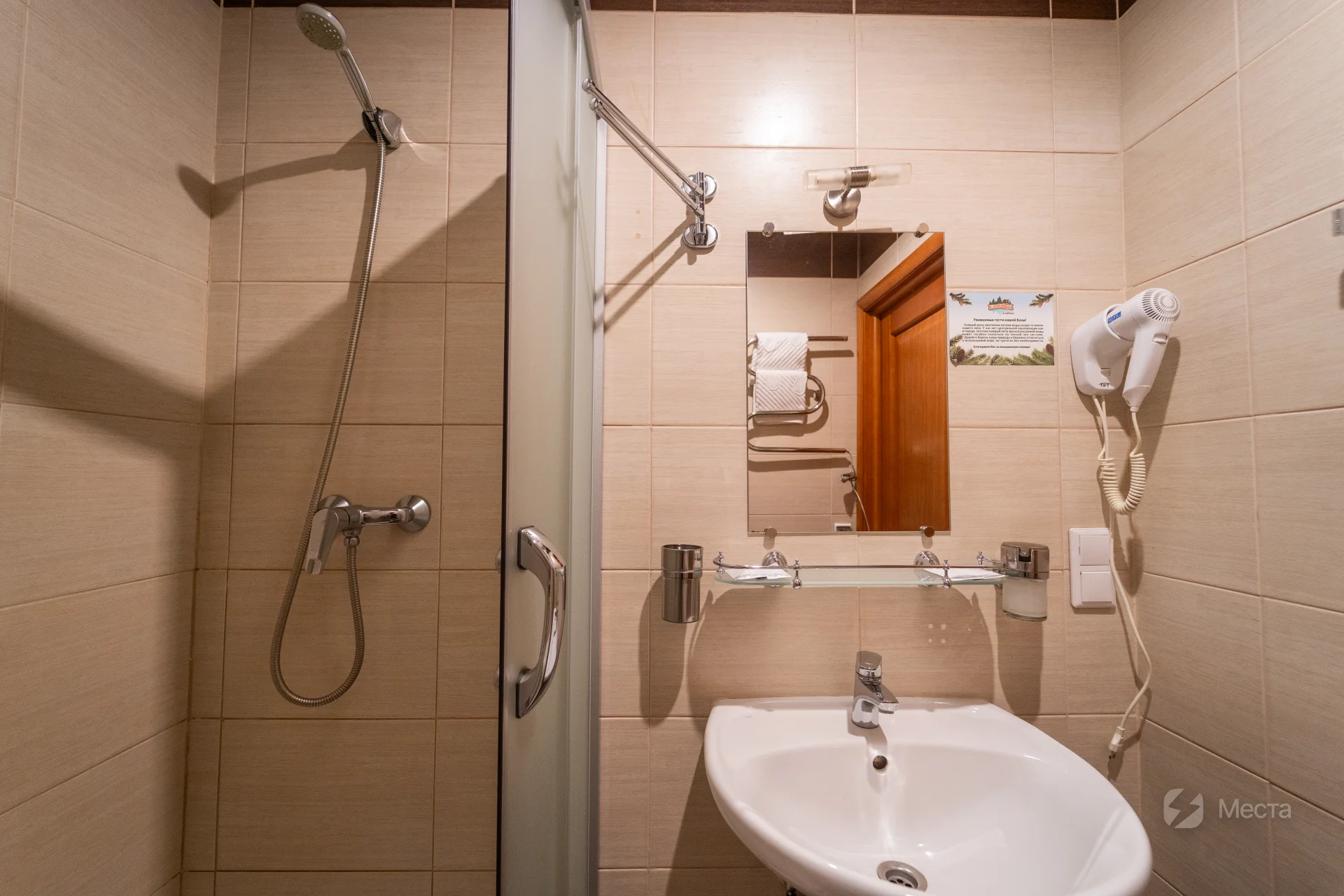 Каждый номер гостиницы «Casa de Campo» обставлен с любовью к своим гостям: верхнюю одежду Вы сможете повесить в высокий шкаф, мелочи положить в прикроватную тумбочку, а перед сном включить свет над кроватью и почитать интересную книжку или посмотреть телевизор. В распоряжении гостей собственная ванная комната с душем, феном и бесплатными туалетно-косметическими принадлежностями.