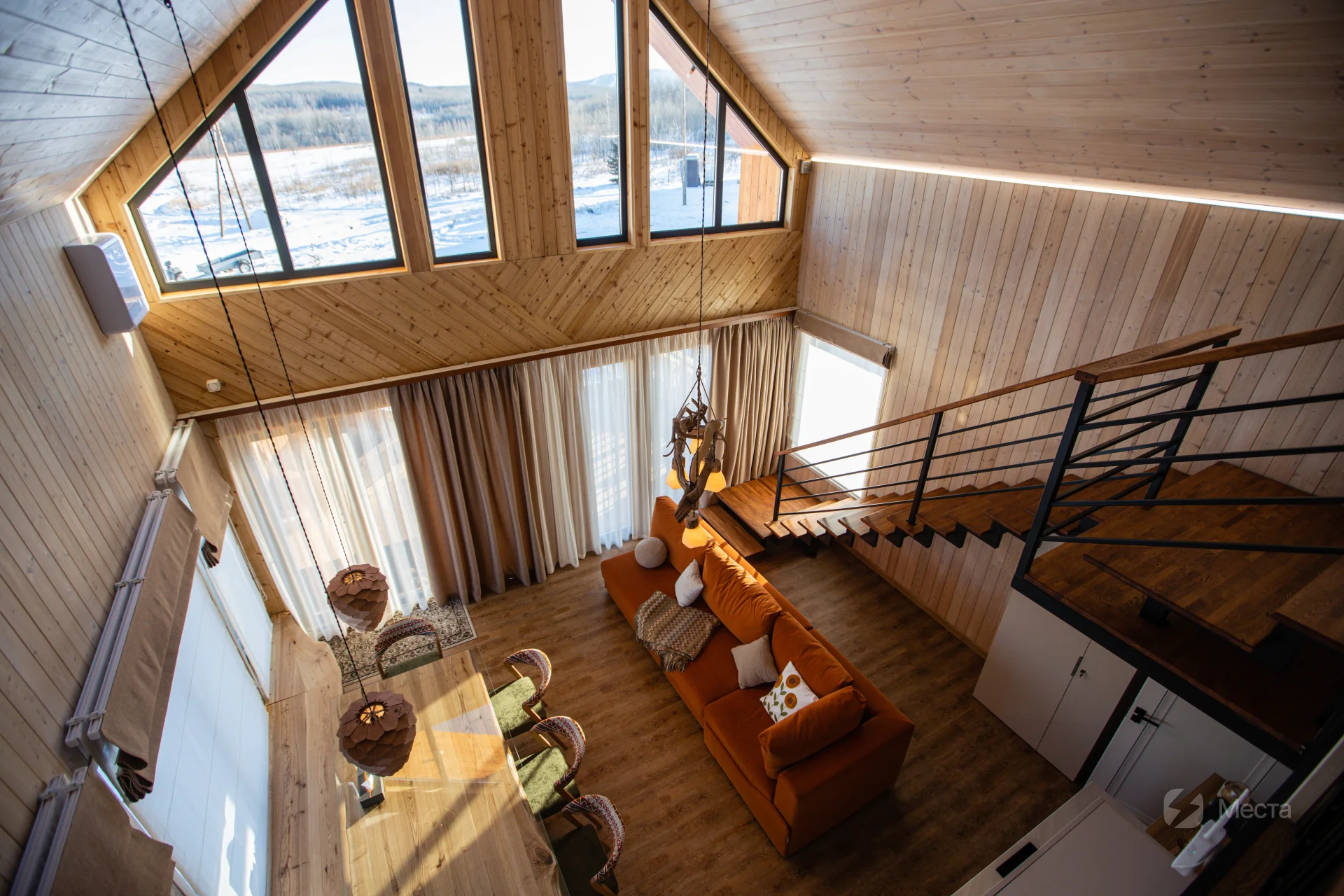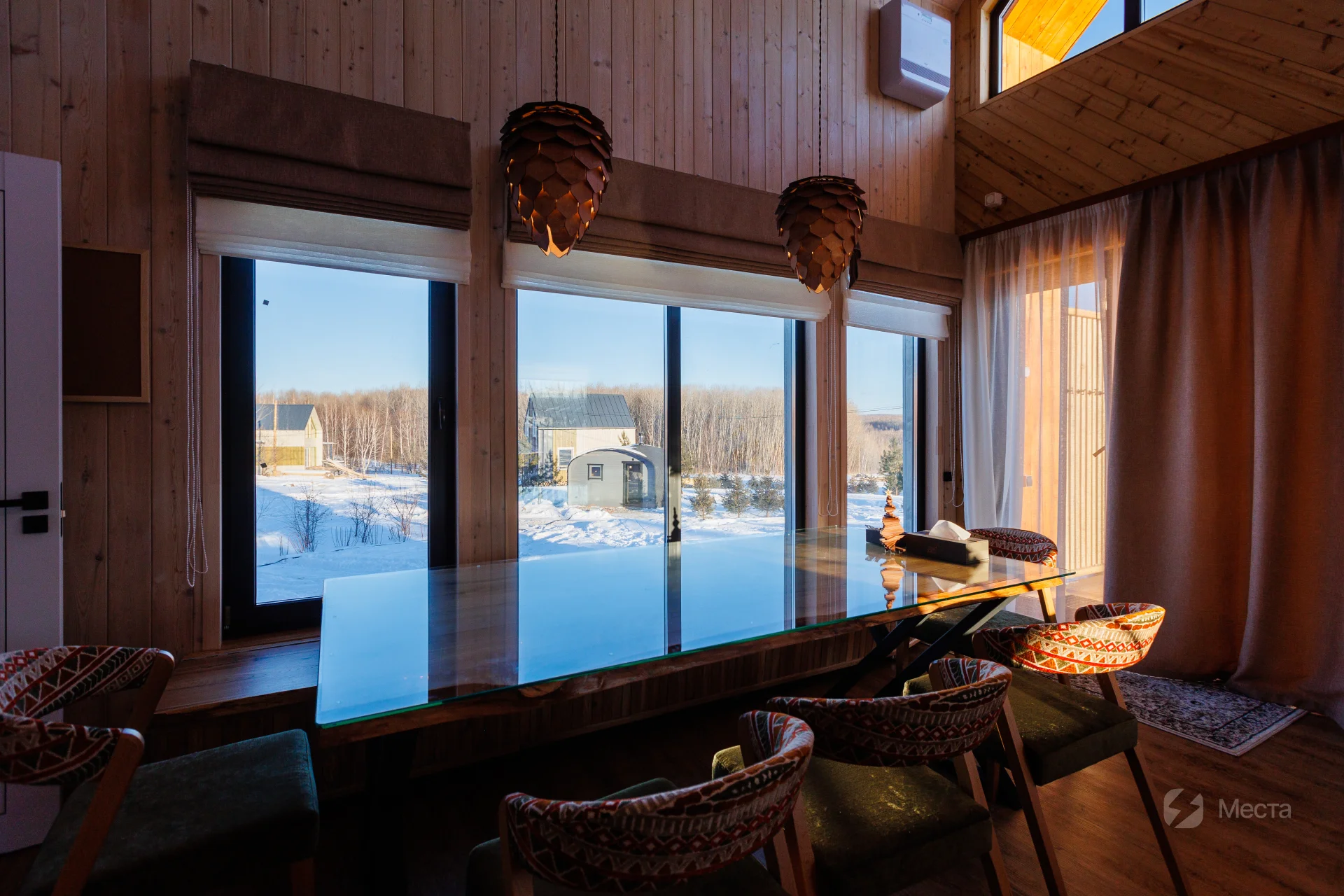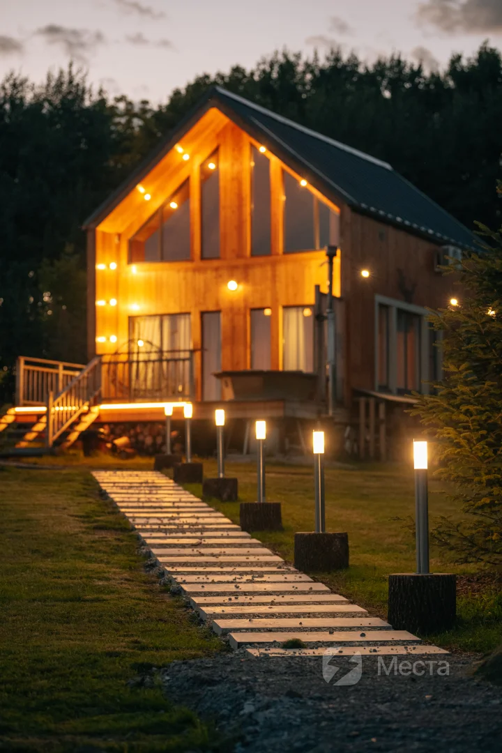 Комфортный двухэтажный дом с двойным светом и панорамным остеклением, которое позволяет любоваться невероятными рассветами и прекрасным видом на горы. Дизайн дома выполнен в теплых оттенках, а стены украшены картинами Дальневосточных художников.