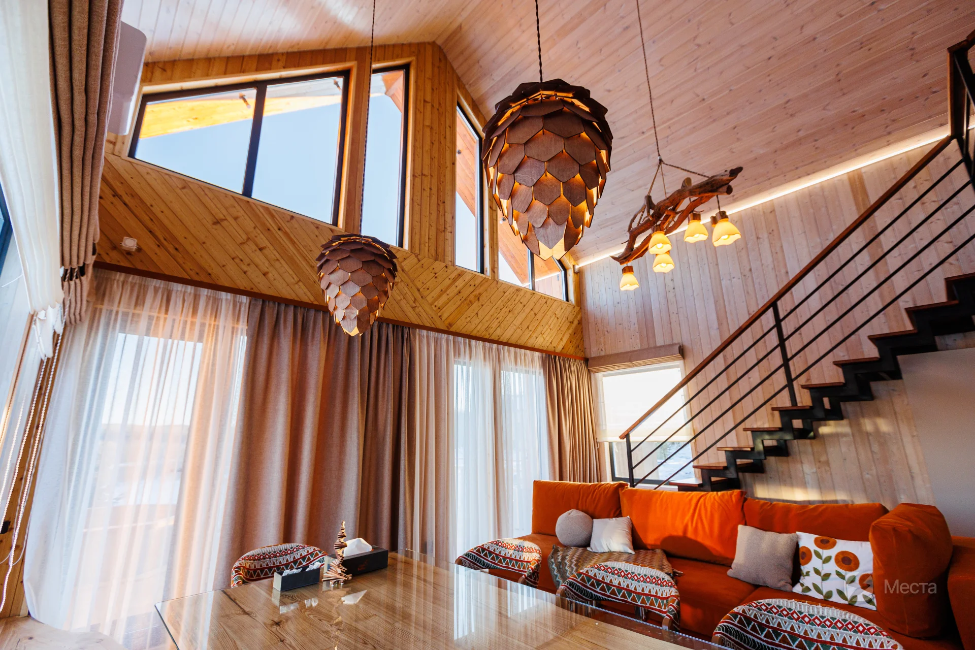 В доме просторная гостиная с большим диваном, три спальни, санузел, высокие потолки, удобная безопасная лестница, теплый пол, Wi-fi, две умные колонки с Алисой, книги, настольные игры. В отдельной комнате на первом этаже видеопроектор с большим экраном, здесь вы сможете с комфортом посмотреть любимые фильмы.