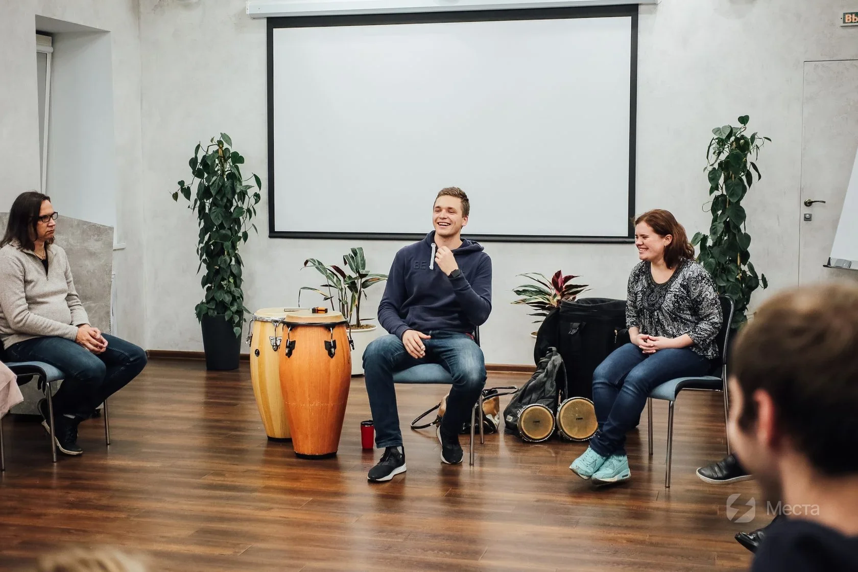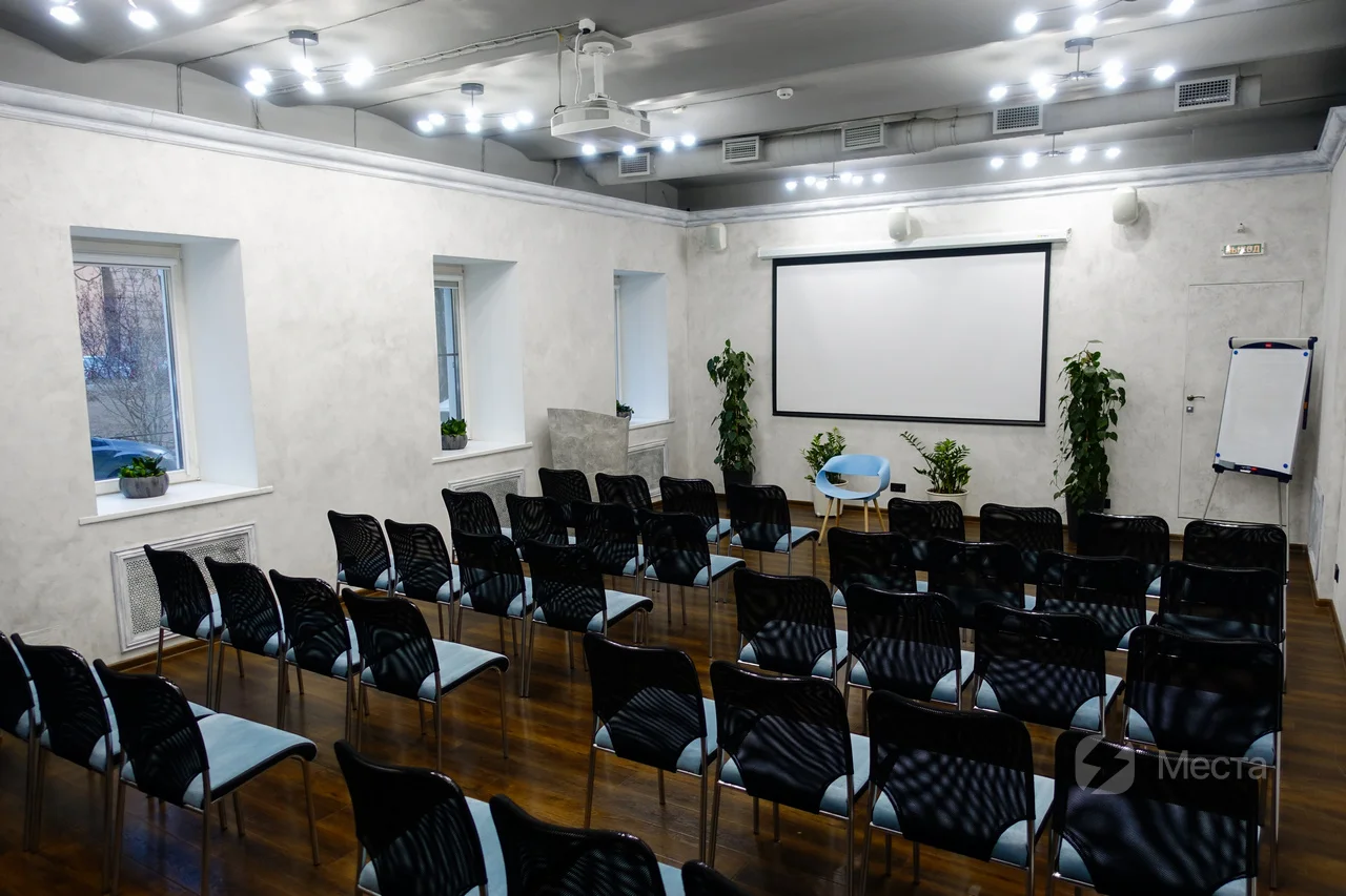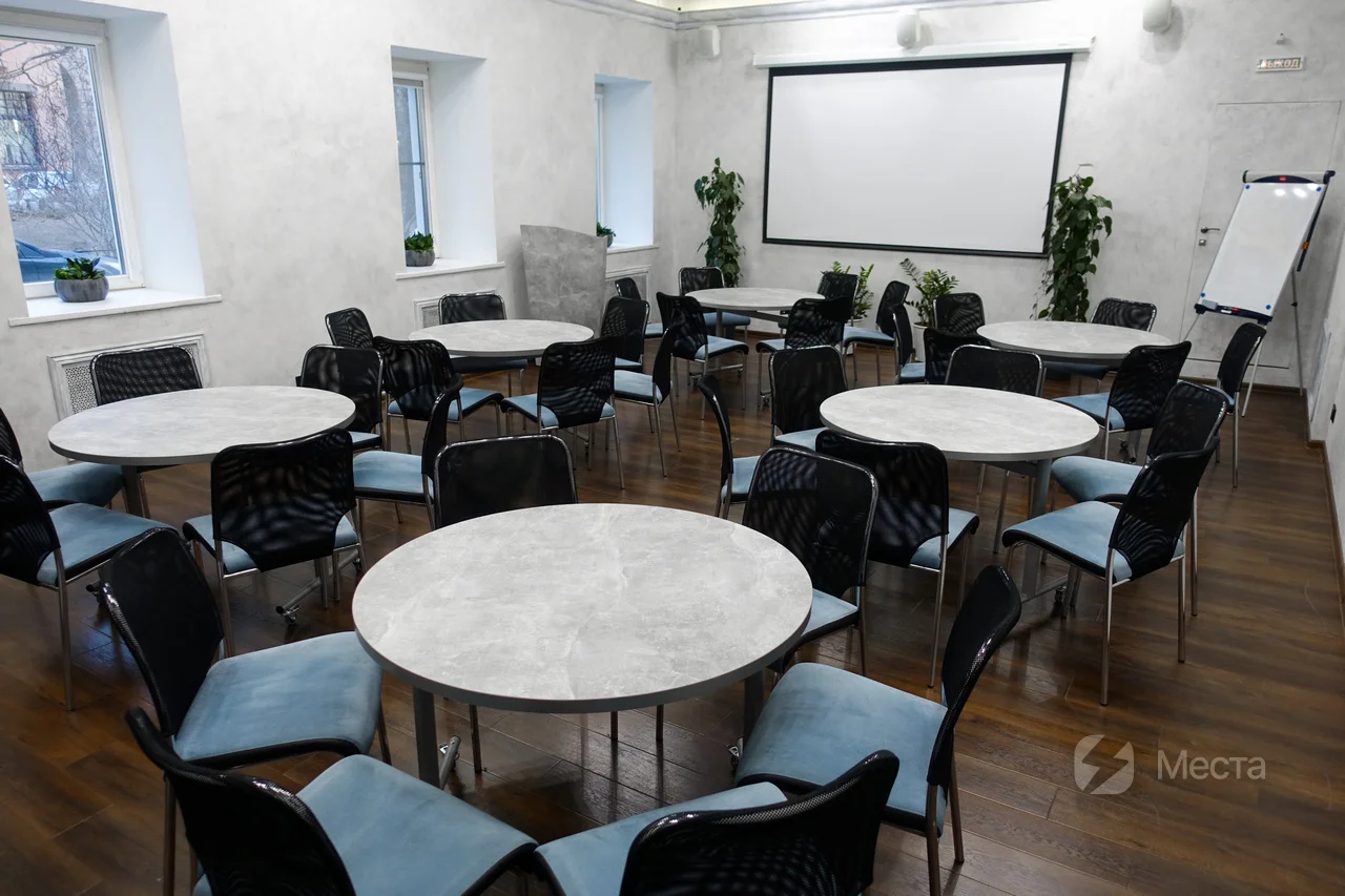 В зале можно провести мастер-классы и лекции, семинары и тренинги, стратегические сессии и мозговые штурмы. Зал легко трансформируется для различных форматов: 40 стульев и 6 круглых столов, флипчарт и мобильная маркерная доска. Full HD кинопроектор Sony. Звук 5.0