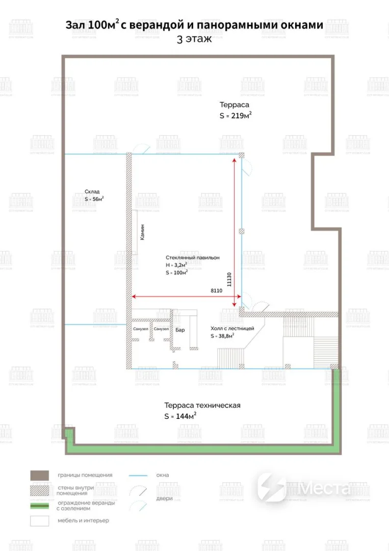 • Всё пространство без других арендаторов