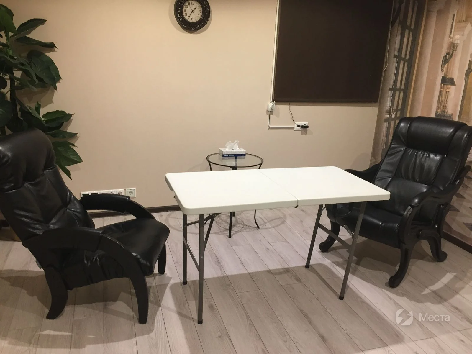 Кабинет 20 квадратных метров. Вместимость до 10 человек. Подходит для проведения мероприятий, рассчитанных на малую группу. По запросу можно разместить массажный стол. На ресепшене можно налить воды или сделать, себе и клиенту, чай и кофе. При необходимости, выдаем планшеты, ручки, карандаши, фломастеры, пледы, коврики.