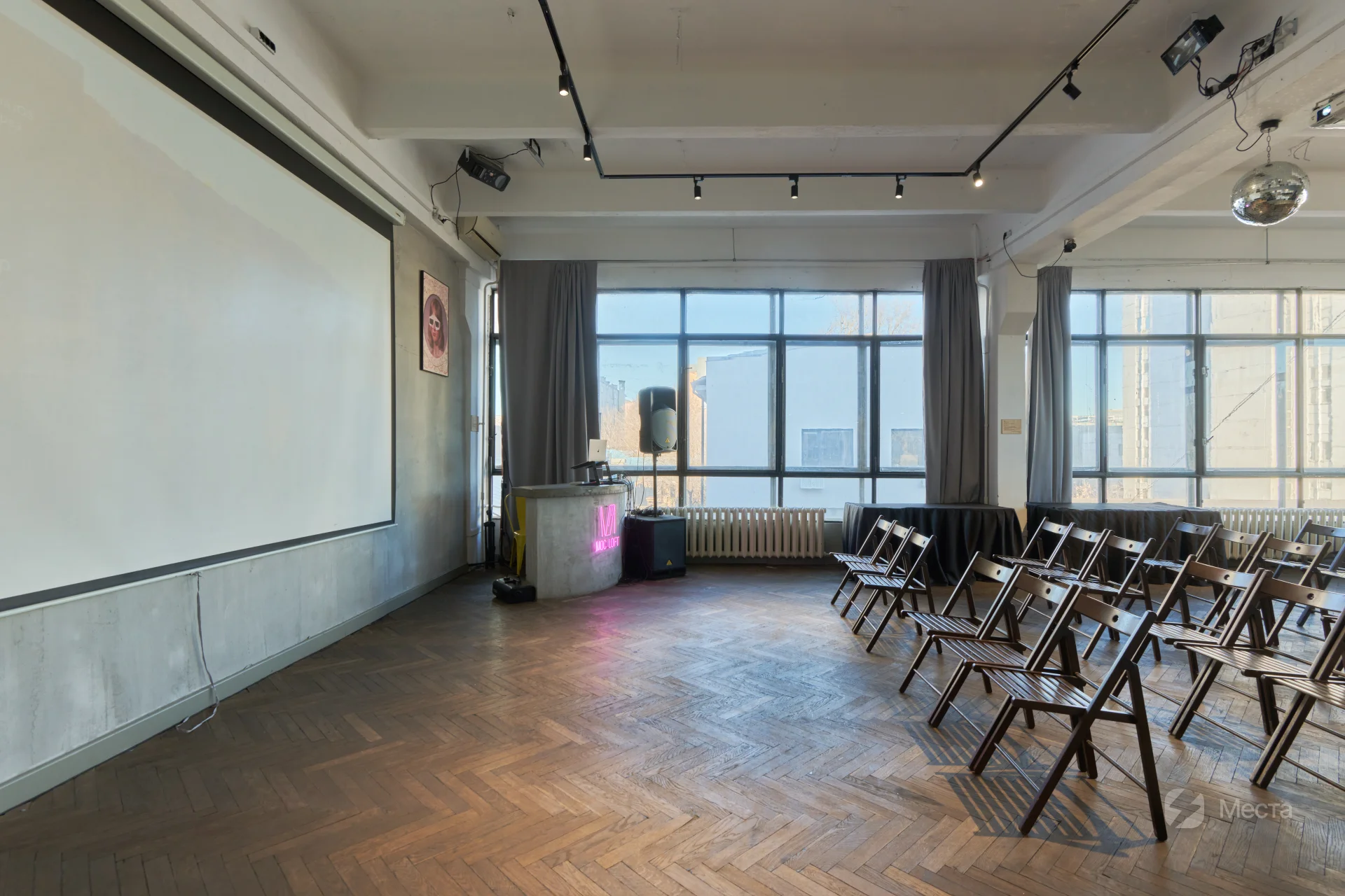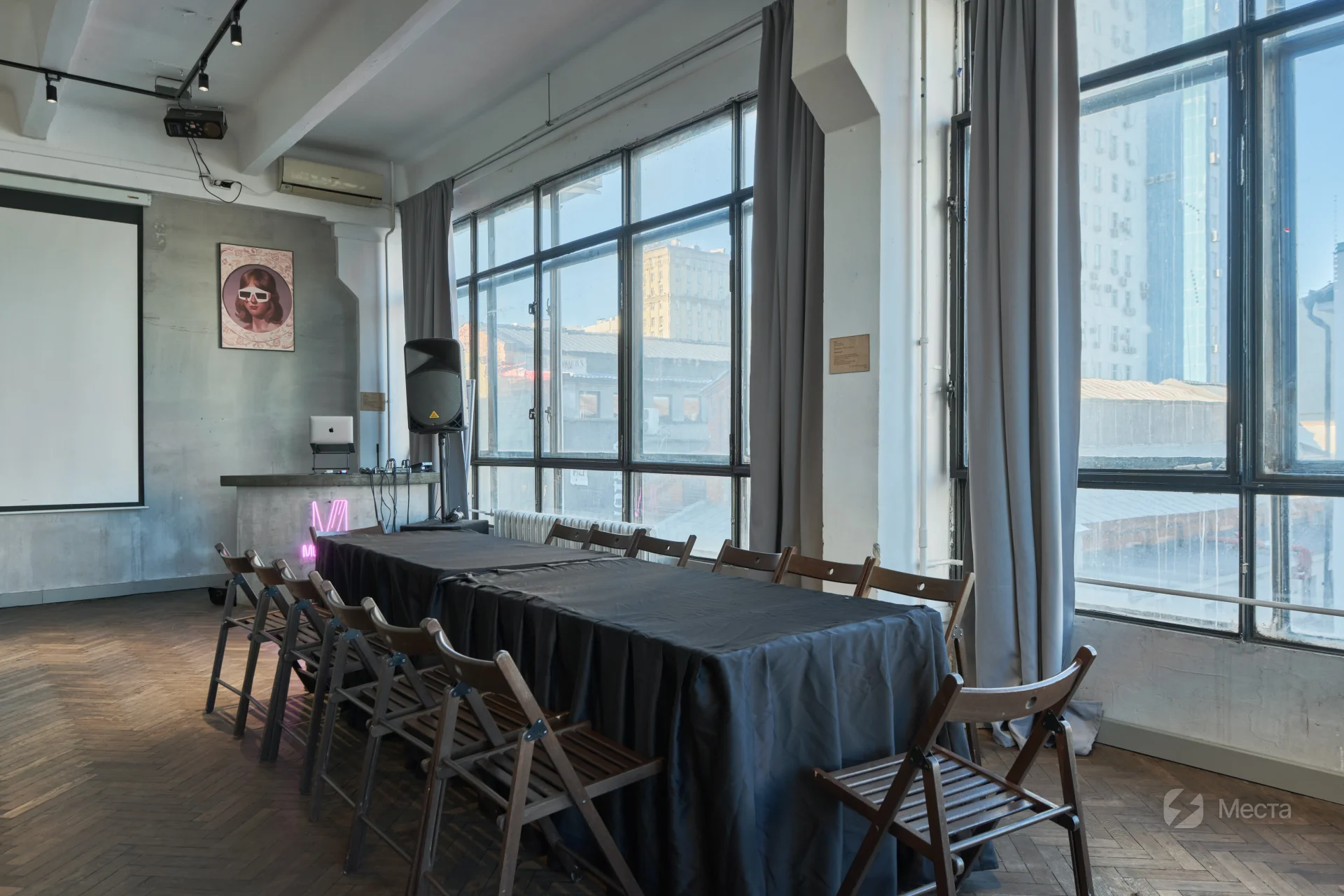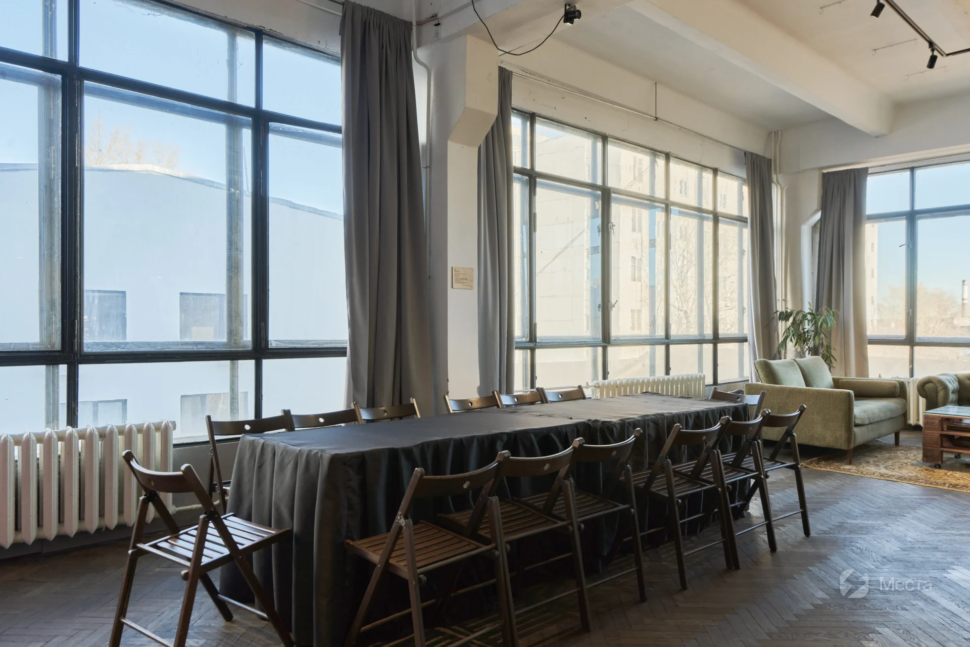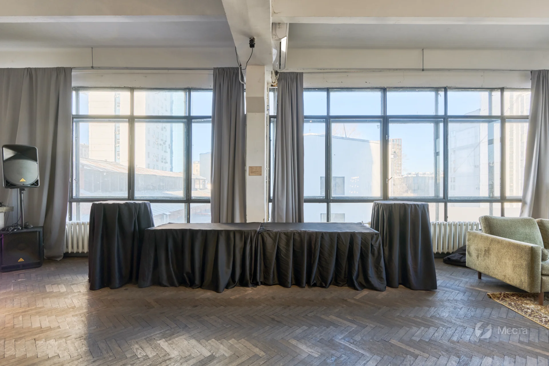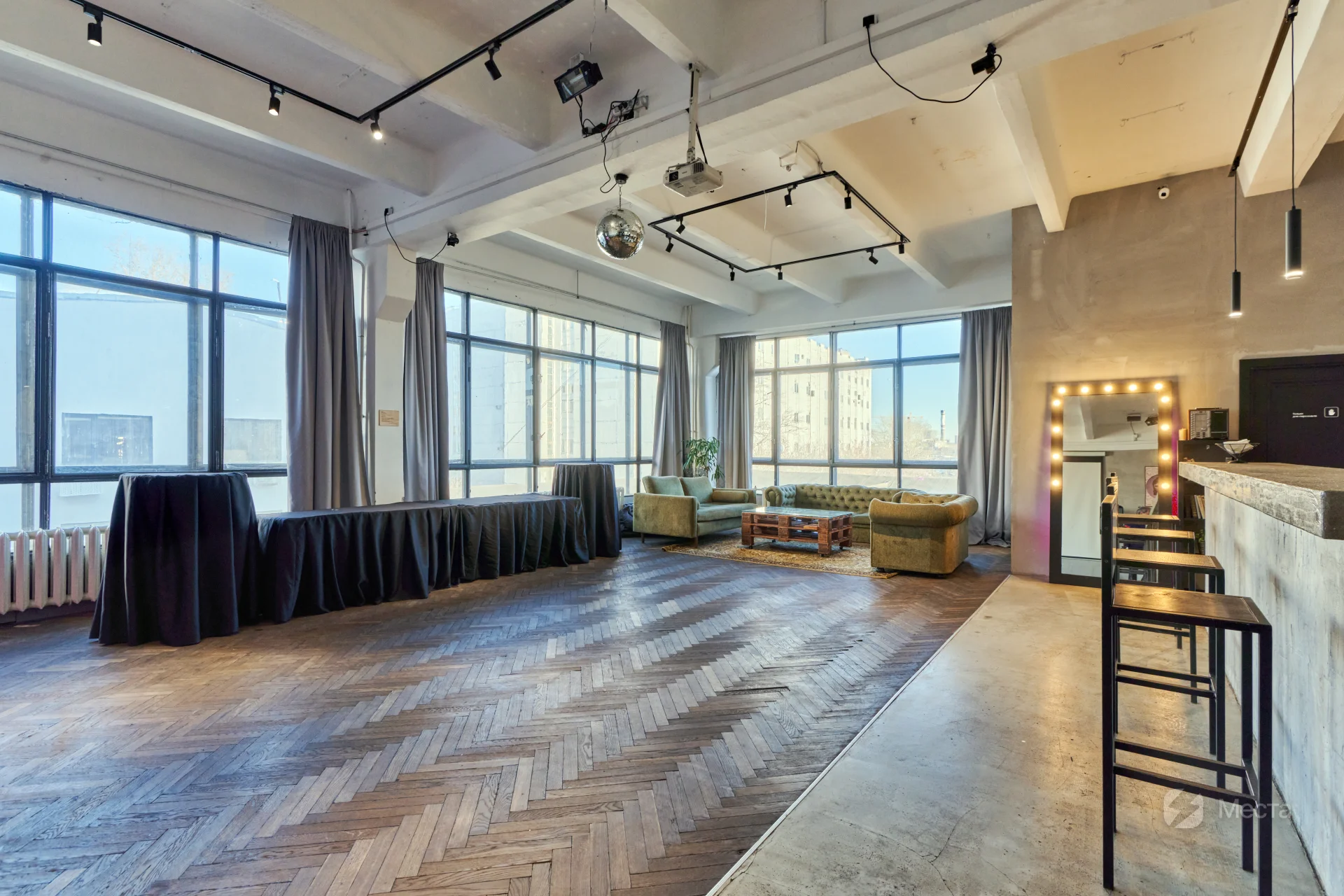 Высокие четырехметровые потолки, брутальные фактурные стены и огромные панорамные окна наполняют помещение естественным светом, создавая атмосферу свободы, вдохновения и стиля. Здесь современный дизайн встречается с индустриальным шиком, предлагая идеальный фон для фото- и видеосъемок, а также для создания уникальной атмосферы вашего мероприятия.