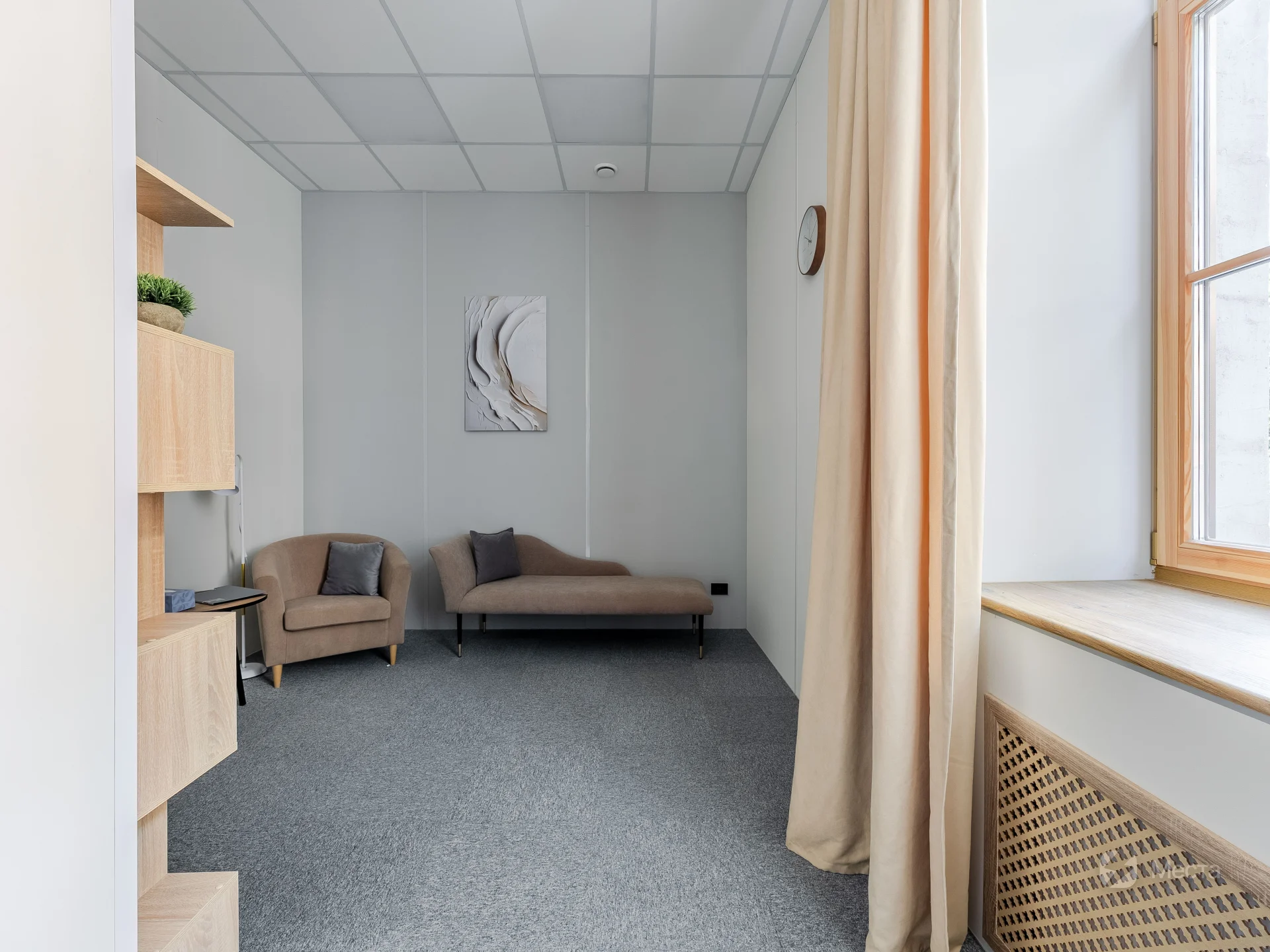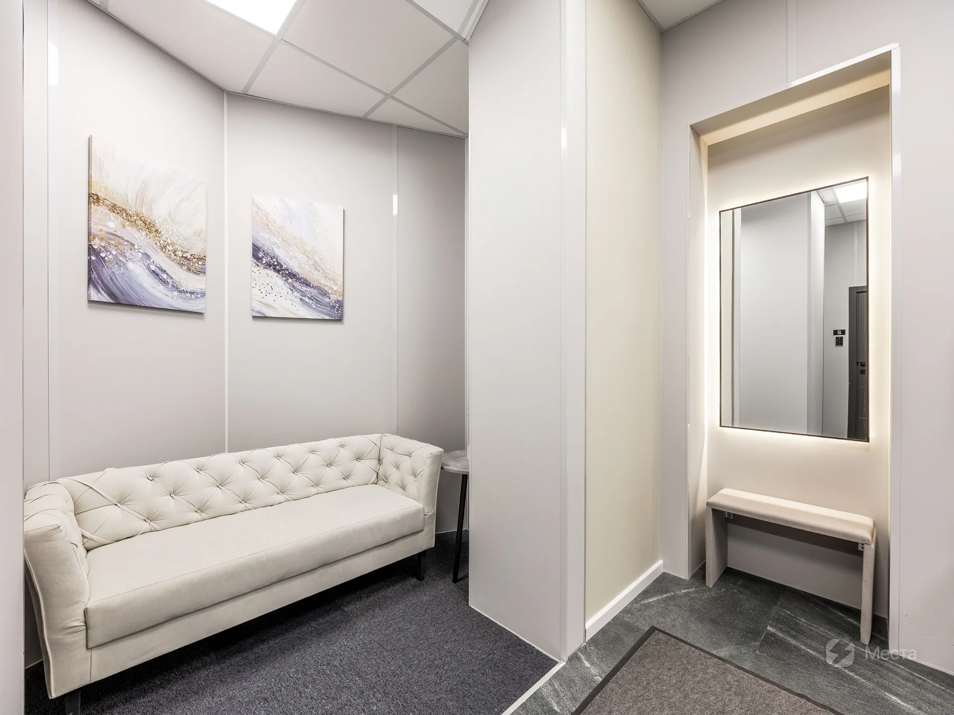 • Места ожидания для клиентов рассредоточены отдельными уютными локациями по всему периметру пространства, в отдалении от дверей кабинетов