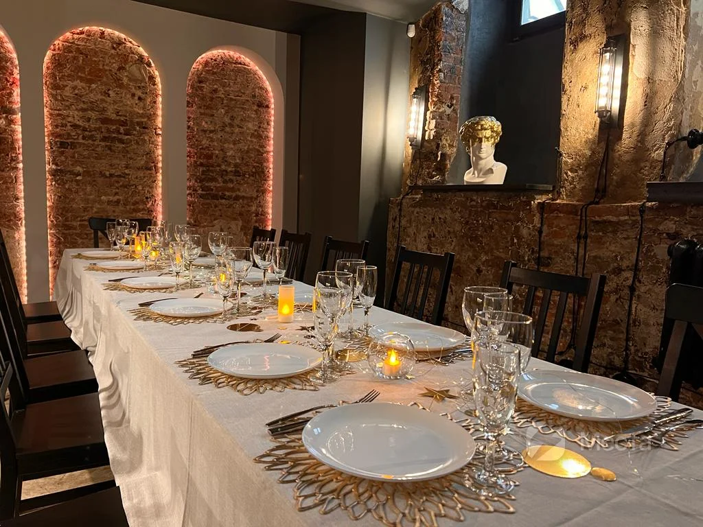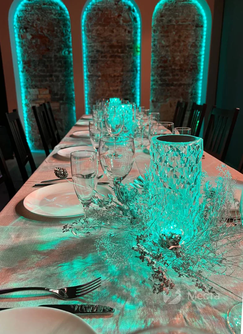 Планируете устроить грандиозную вечеринку с большим количеством гостей? Кана превосходно подойдет под стиль любого мероприятия. На специально подготовленной грифельной стене можно вести лидерскую таблицу по количеству выпитых шотов и не только! Акустическая система отлично подойдет как под ночь караоке, так и для своей собственной дискотеки, а светящиеся арки вместе со старинным кирпичом - для крутых фотосессий.