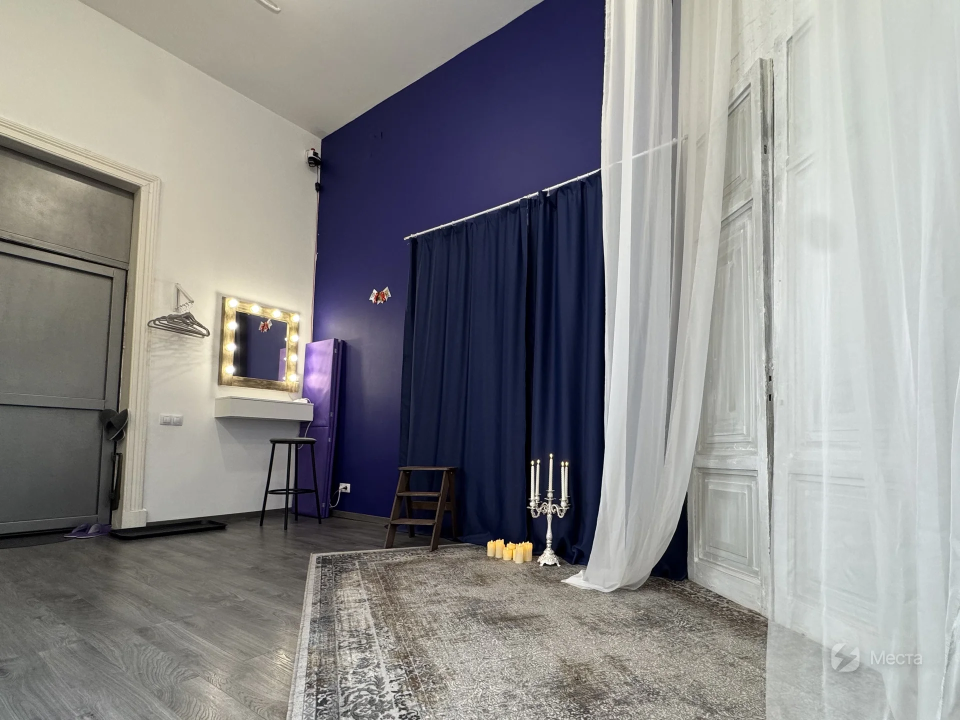 Вход в фотостудию осуществляется в сменной обуви. Для вашего удобства входная зона оборудована с вешалкой для одеждой, пуфом, обувницей. Есть тапочки и одноразовые носочки.