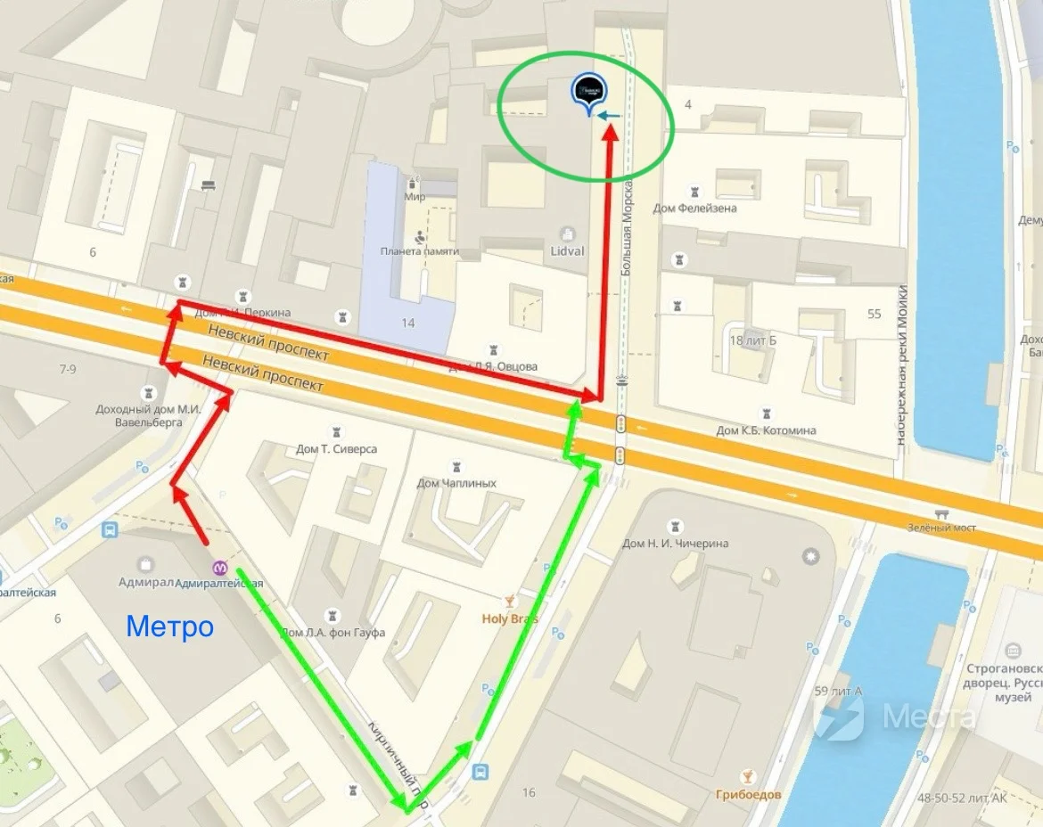 С Невского пр-та проходите по пешеходной зоне к арке Дворцовой площади. Через 50м по левой стороне заходите в арку внутри здания (ориентир БЦ Лидваль, кафе Пышки) и далее по левой стороне металлическая серая дверь с вывеской «Караоке Лаундж». Позвоните в звоночек слева от двери) Ждём Вас! 💜