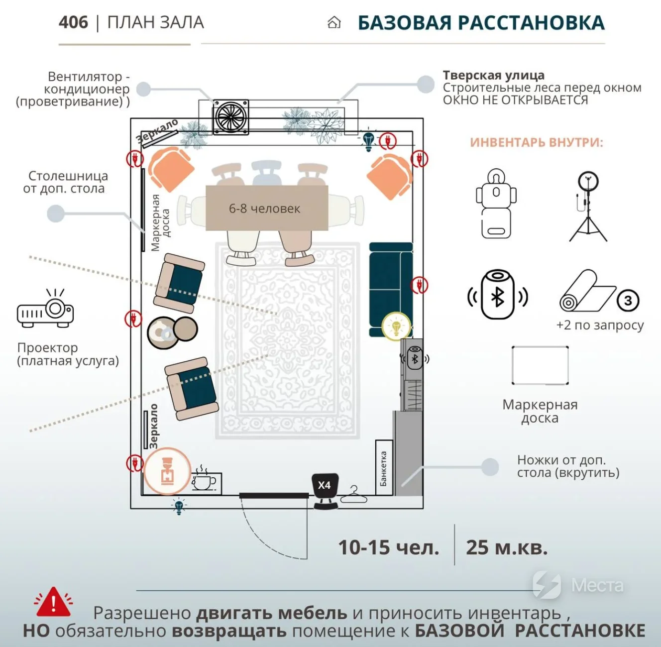 Соблюдайте правила, установленные в пространстве. Не нарушайте общественный порядок и бережно относитесь к имуществу.