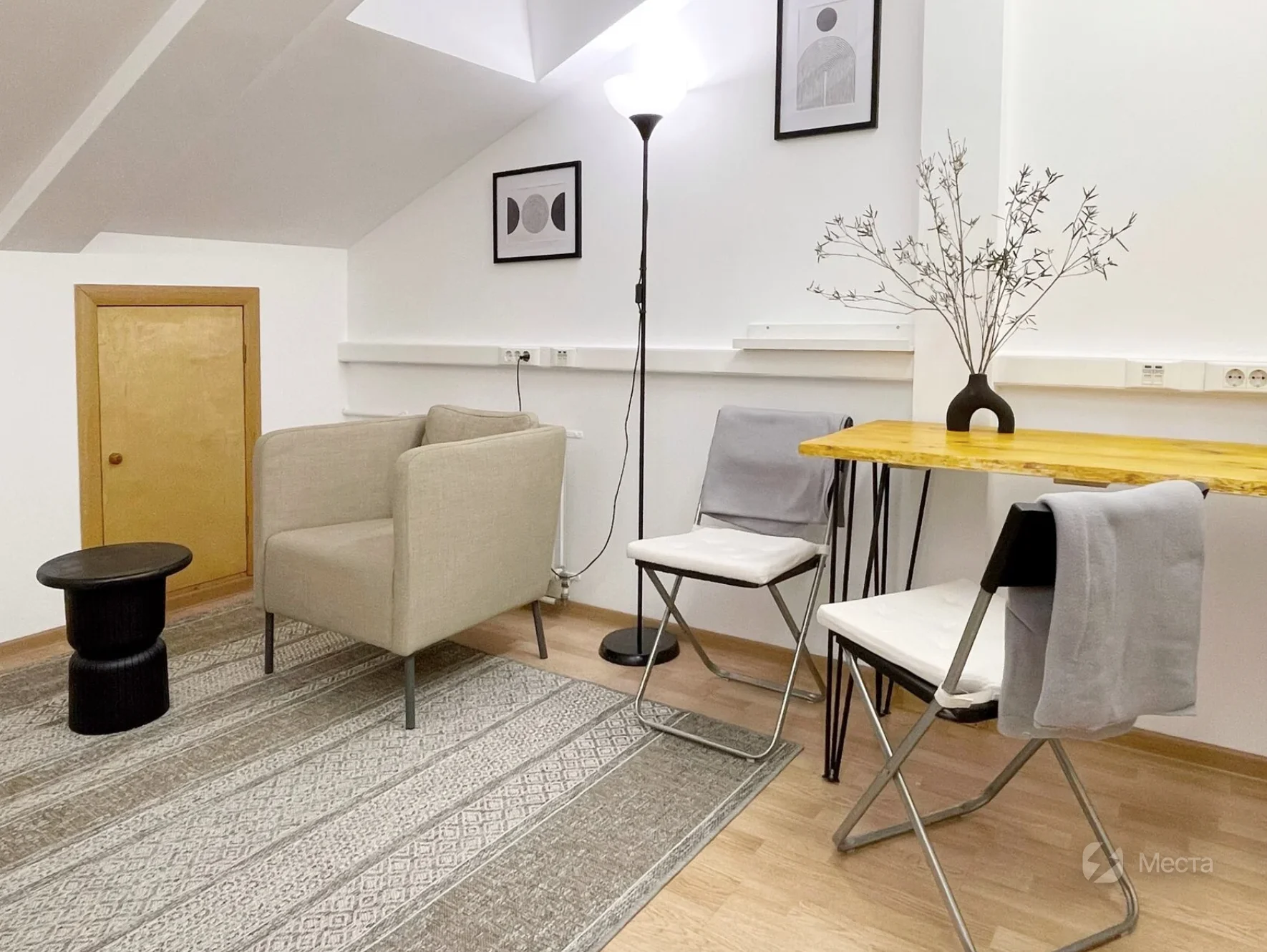 Кабинет на Бауманской Б-21 подходит для индивидуальных и семейных сессий, мини - групп и мастер-классов, массажа. 🛋️ МЕБЕЛЬ: 1 кресло | Диван для 2-х человек Стол 120*60 из натурального дерева|2 складных стула Журнальный столик | Консоль Подоконник для отдыха с подушками (6 шт.) Рейл для верхней одежды 📝ИНВЕНТАРЬ: 2 пледа и 3 подушки | Зеркало в полный рост Йога-коврики | Массажный стол |Флипчарт с маркерной поверхностью (100*70) |Кольцевая лампа (*в кабинете 13) *В данной локации инвентарь находится в общей зоне (офис 13) и приносится клиентом самостоятельно в кабинет ПЛОЩАДЬ: 12м2 КОЛ-ВО ЧЕЛОВЕК: 1-5 WiFi: ⚡ 25 Мб/сек Кондиционер: ❌Нет Окна: Мансардные | без штор БРОНИРОВАНИЕ ! Нельзя шуметь *смежный кабинет с другими офисами ! Мансарда и низкие потолки: площадь помещения, где можно стоять в полный рост - 9 м.кв. ! Мансардные окна ВАЖНО закрывать, уходя * штраф за затопленный кабинет 500 ₽-1000 ₽ ! В данной локации инвентарь находится в общей зоне (офис 13) и приносится клиентом самостоятельно в кабинет. Возвращайте инвентарь на место !