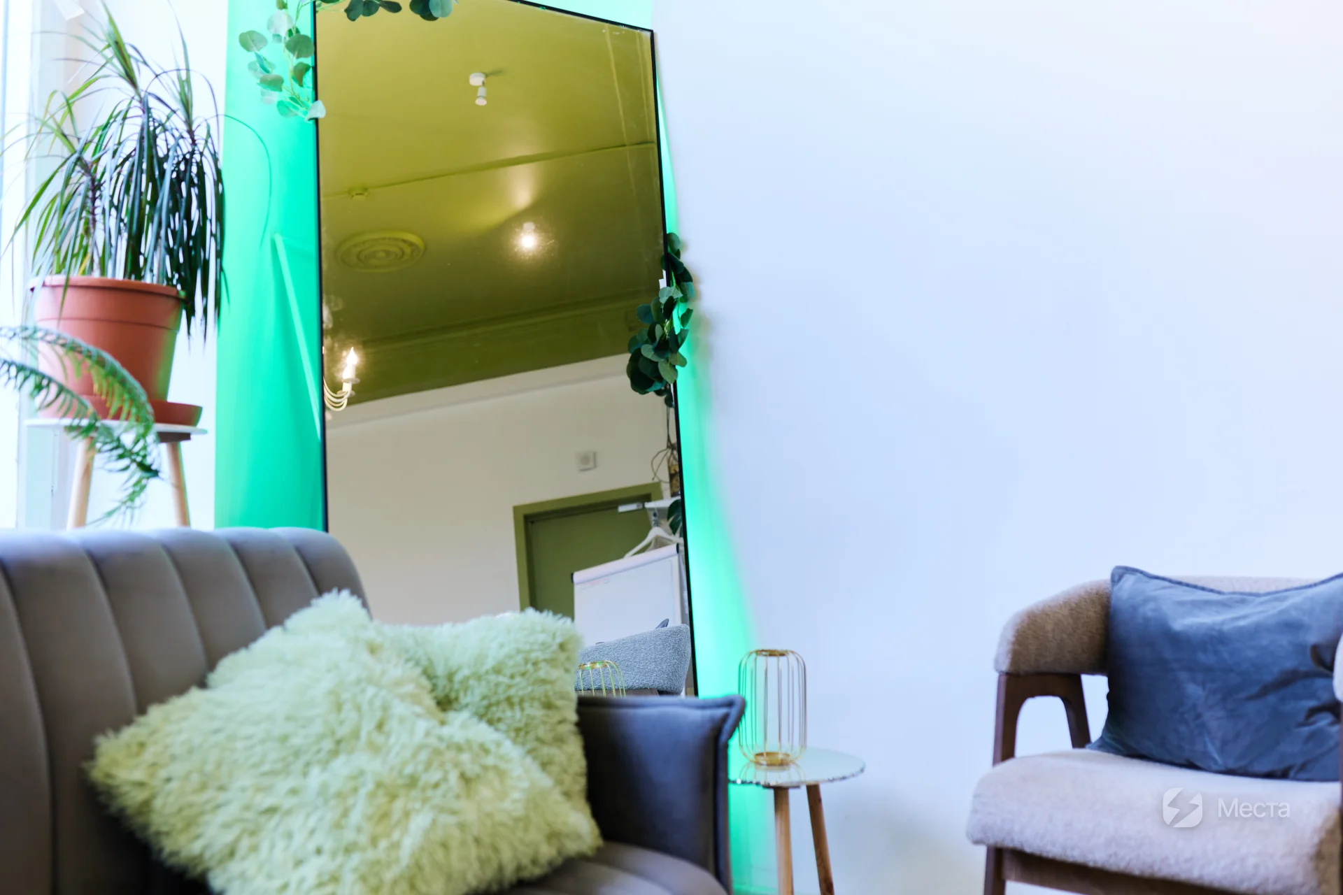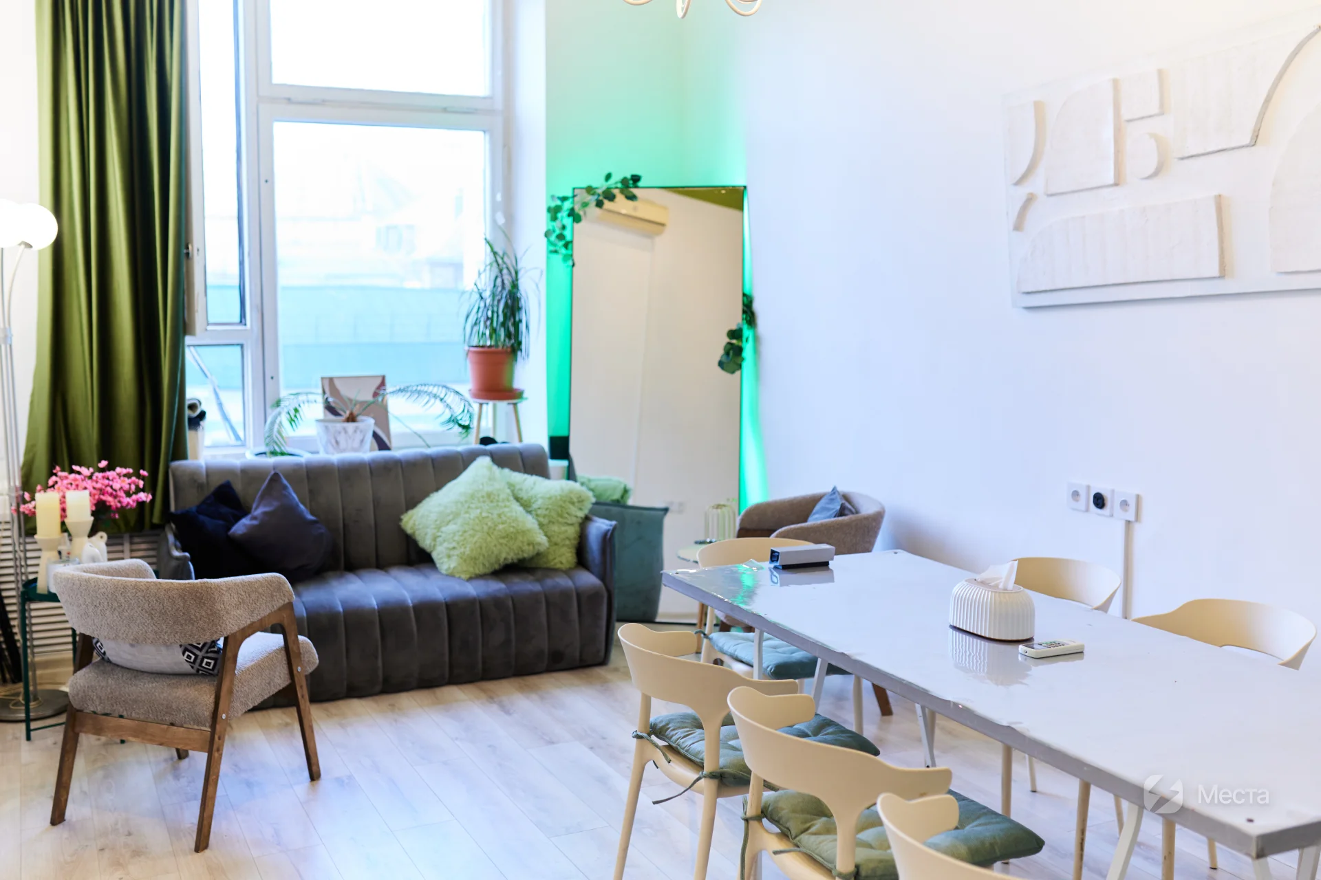 Зал-лофт на Пушкинской П-411 подходит для индивидуальных и семейных сессий, групп до 12 человек и мастер-классов, массажа, праздников