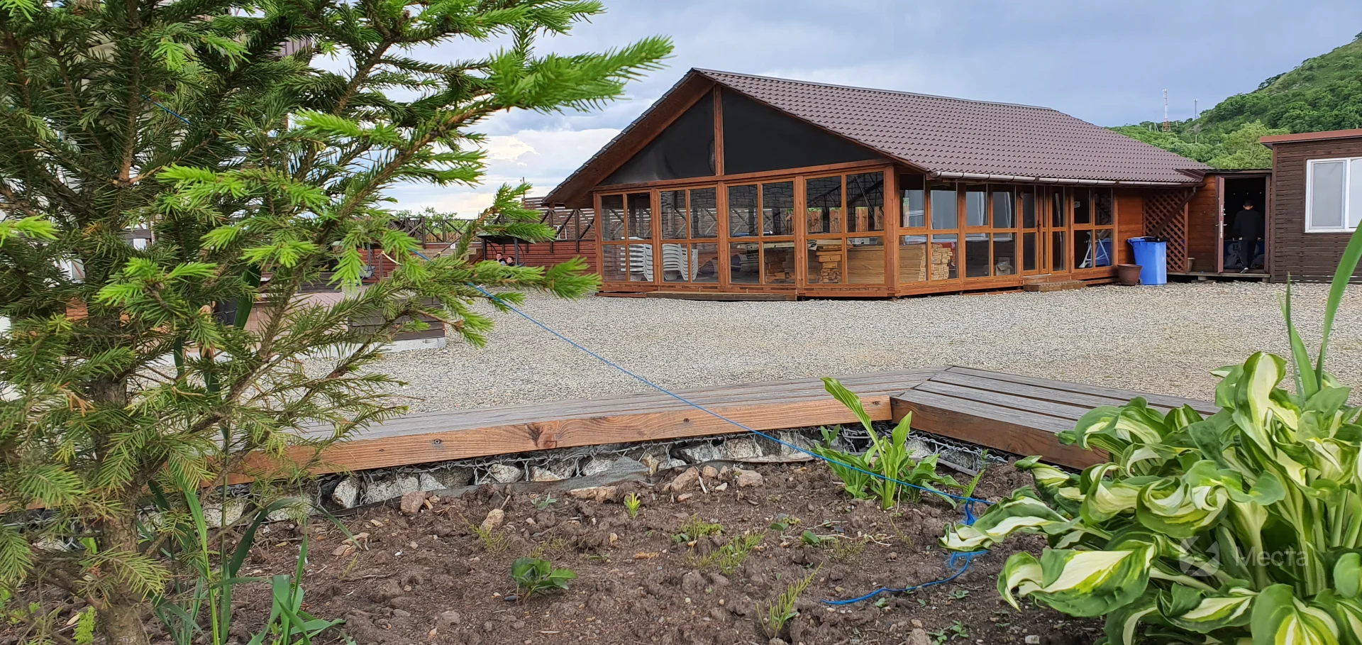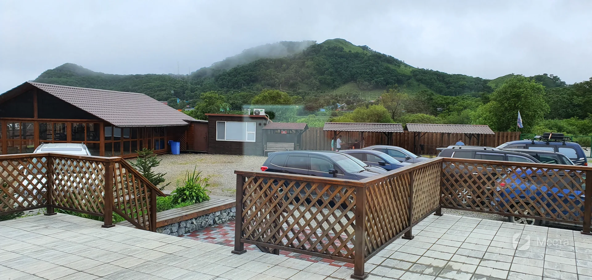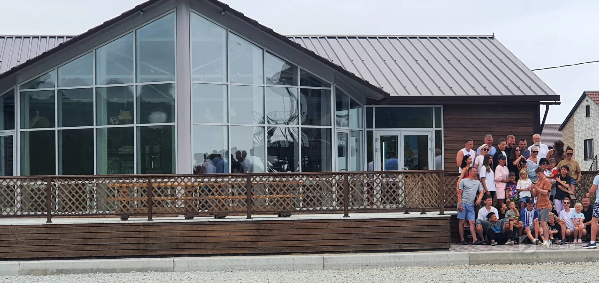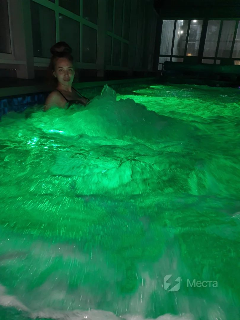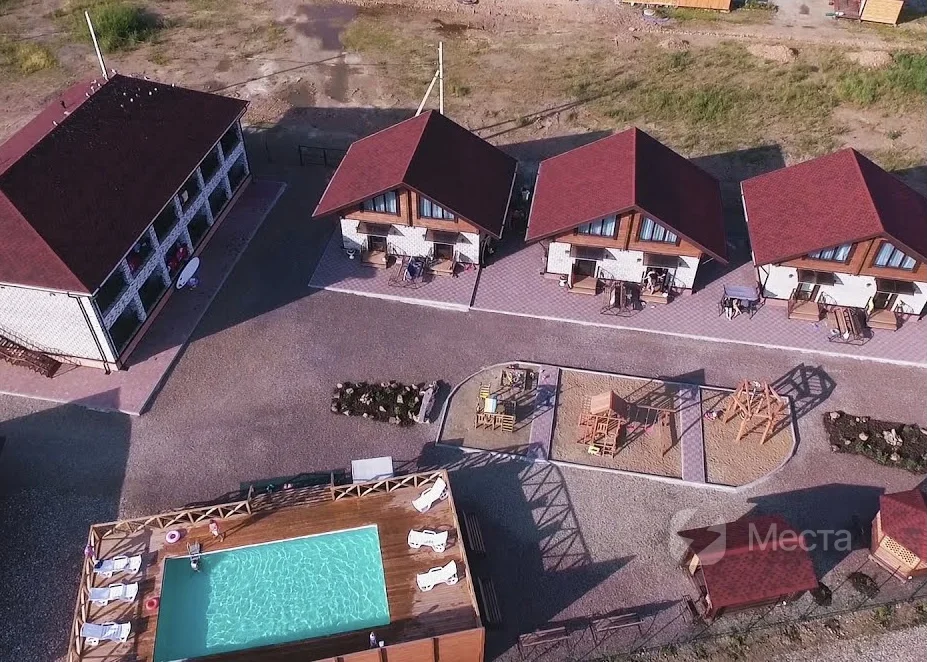 Кафе с панорамным видом. В здании расположен также бассейн с аэромассажем и обратным течением. Кафе на ходится на территории базы отдыха "Красный кот".