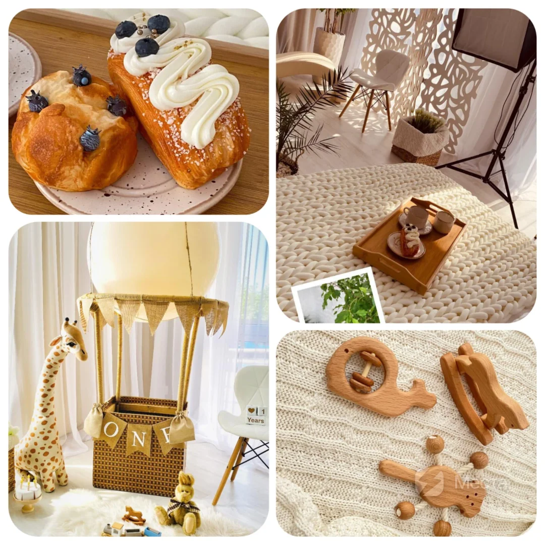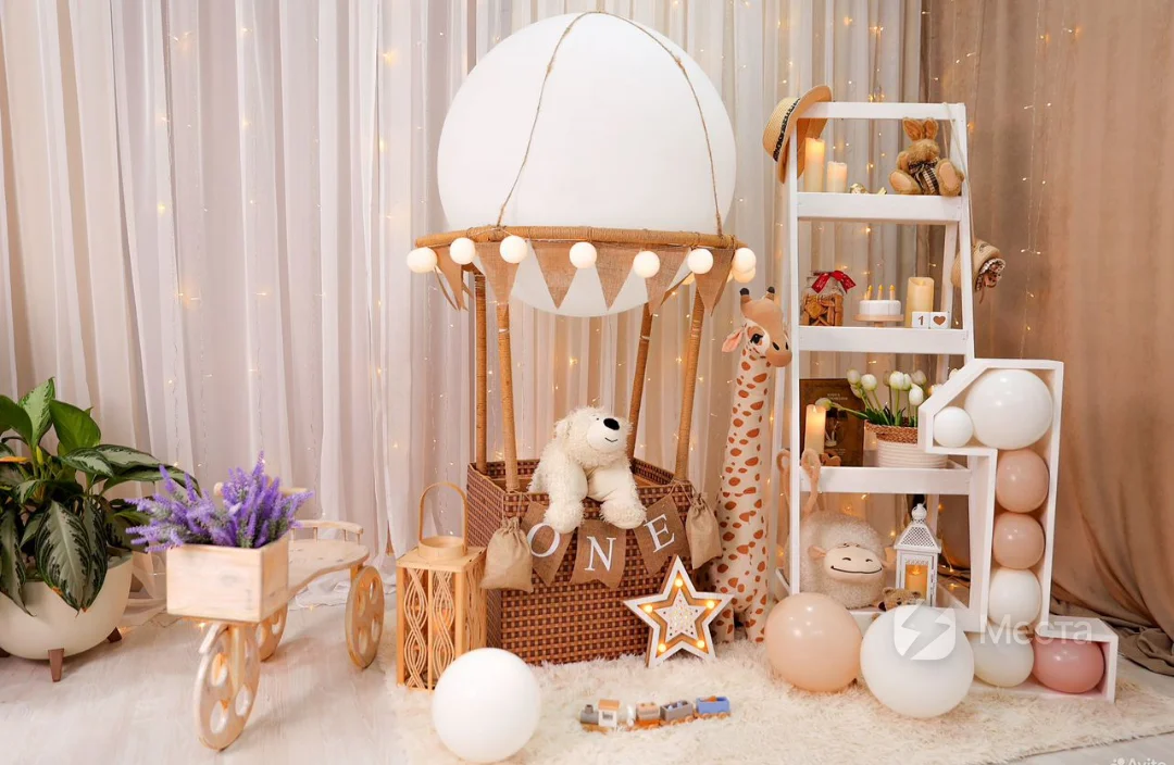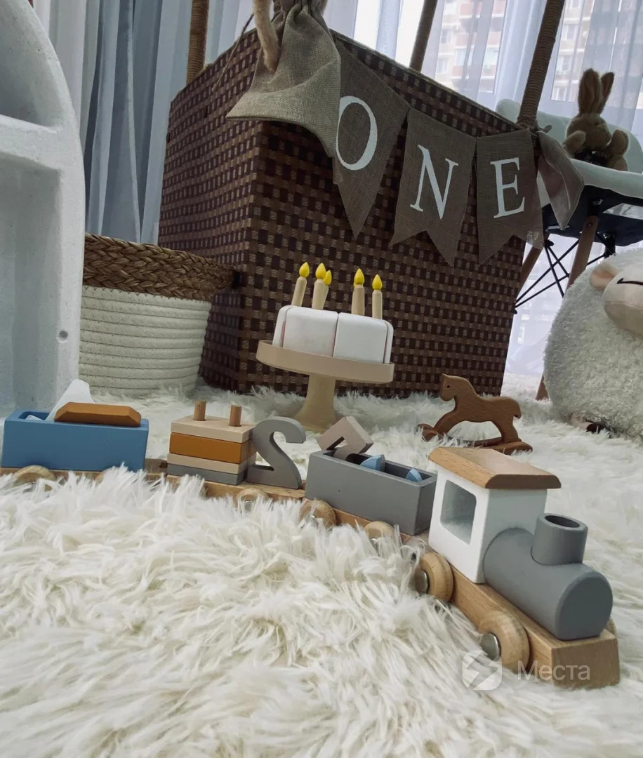 Панорамные окна на 2 стороны, прямые солнечные лучи) Оборудование: 1 импульсный источник, 2 постоянных источника света, штатив для телефона, вентилятор. Есть детская локация, электрический насос для шариков, деревянные игрушки. Имеется фотограф! Много естественного света!