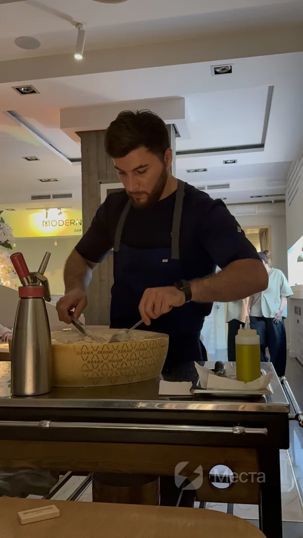 Один из лучших ресторанов в центре города с авторскими коктейлями и блюдами. Фишка: паста, приготовленная шефом на ваших глазах в сырной головке.