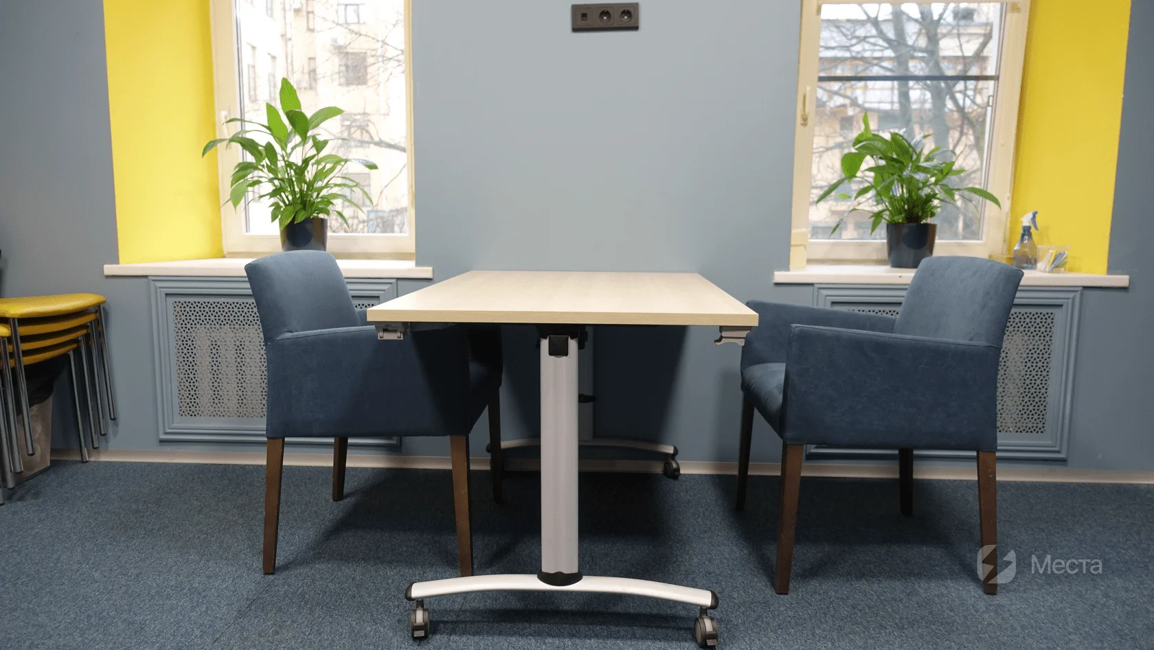 • Три мобильных стола и 10 кресел