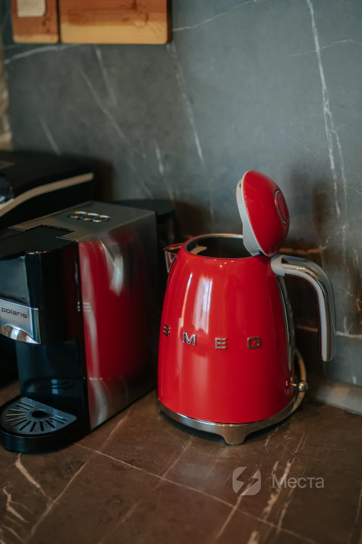 Кофемашина, льдогенератор, колонка Алиса, проектор с большим экраном.