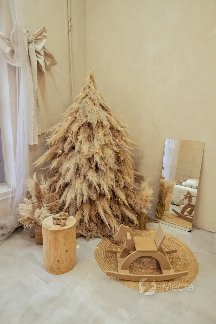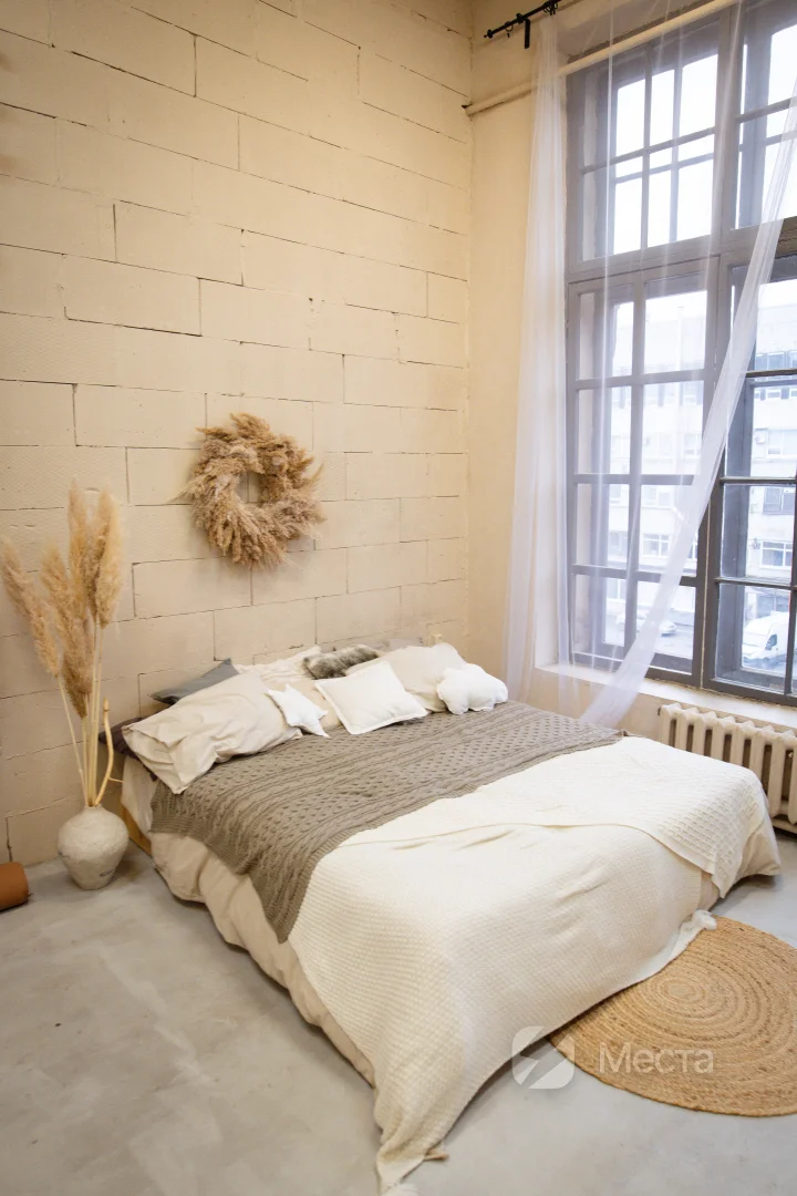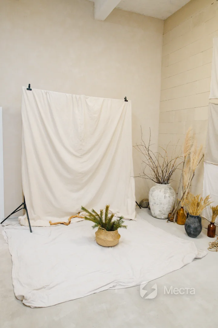 Наш зал Уют в стиле эко-минимализм. 4 функциональные зоны: Кровать, диван, бумажные фоны и декоративная зона с сухоцветами и льняным фоном